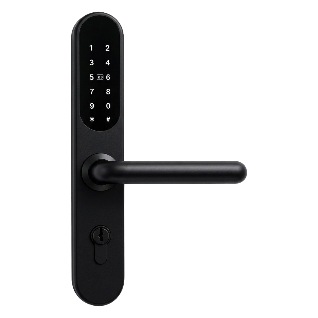 WebLock Shield provides the quickest solution to a keyless entry managed remotely. Super-easy to install and use! WebLock Shield Smart Handle is battery-powered and connects wirelessly to its hub. It has a beautiful design with keypad numbers that light up when touched.